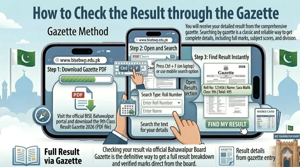 The Result Gazette is another official and useful way to check the 9th class result of the Bahawalpur Board.