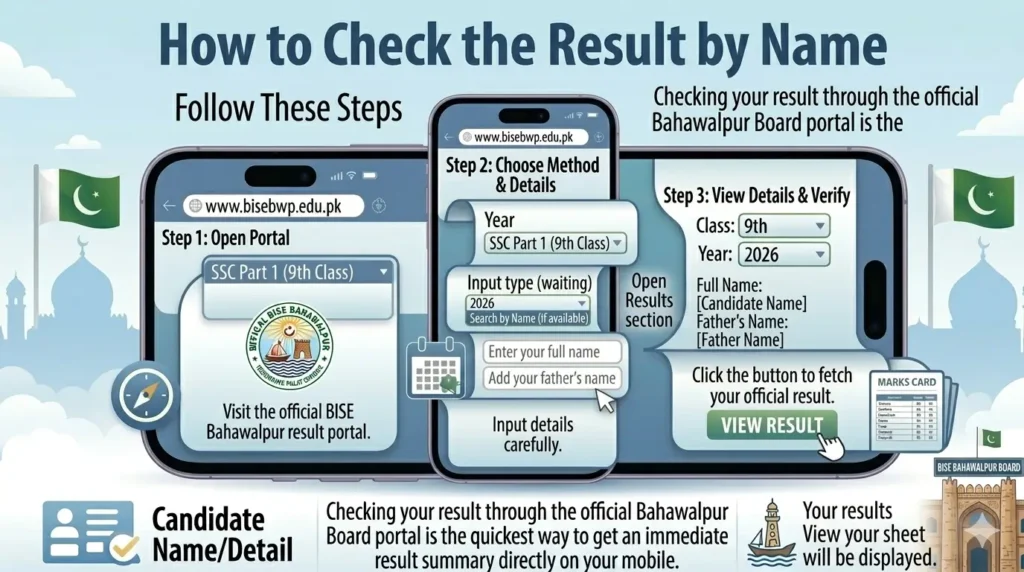 Students who forget their roll number can also check the Bahawalpur Board 9th Class Result 2026 by name.
