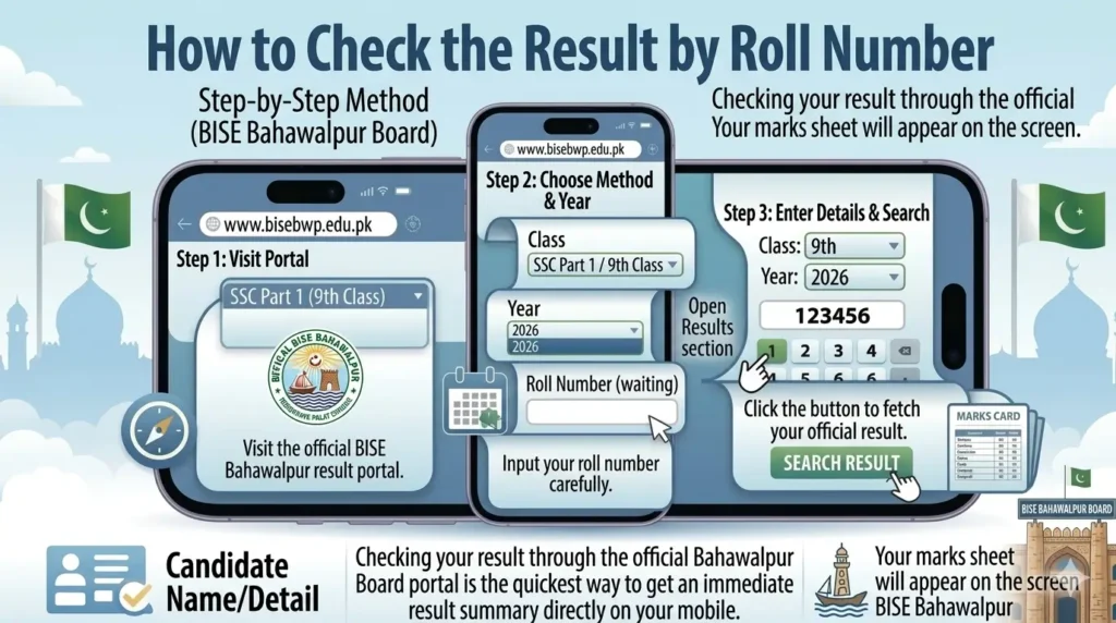 Checking the BISE Bahawalpur 9th result by roll number is the easiest and most reliable method.