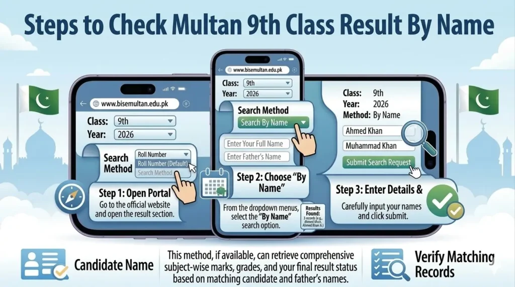 Students who forget their roll number can also try checking the BISE Multan 9th result by name.